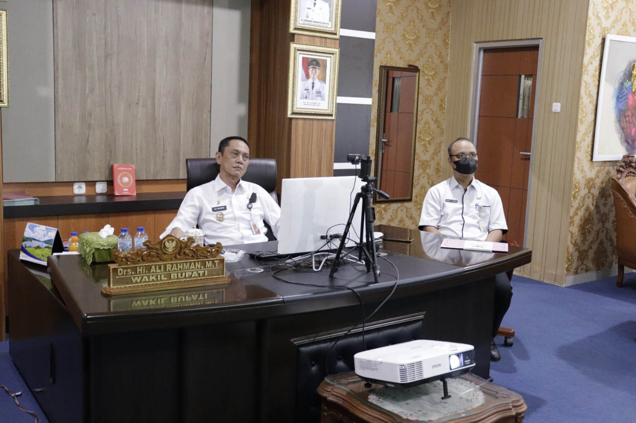 Way Kanan, etalaseinfo (SMSI) – Wakil Bupati Drs. Ali Rahman, M.T menghadiri Pertemuan Tahunan Bank Indonesia Tahun 2021 secara tatap maya, Rabu (24/11/2021) di Ruang kerja Wakil Bupati Pemkab Way Kanan bersama Badan Pengelola Keuangan dan Aset Daerah.