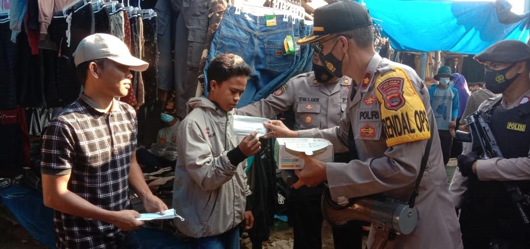 Petugas juga memberikan masker dan tidak bosan-bosannya mengingatkan kepada masyarakat akan pentingnya mematuhi Protokol kesehatan dengan menerapkan 5M, seperti mencuci tangan, memakai masker, menjaga jarak, menjauhi kerumunan dan mengurangi mobilitas.