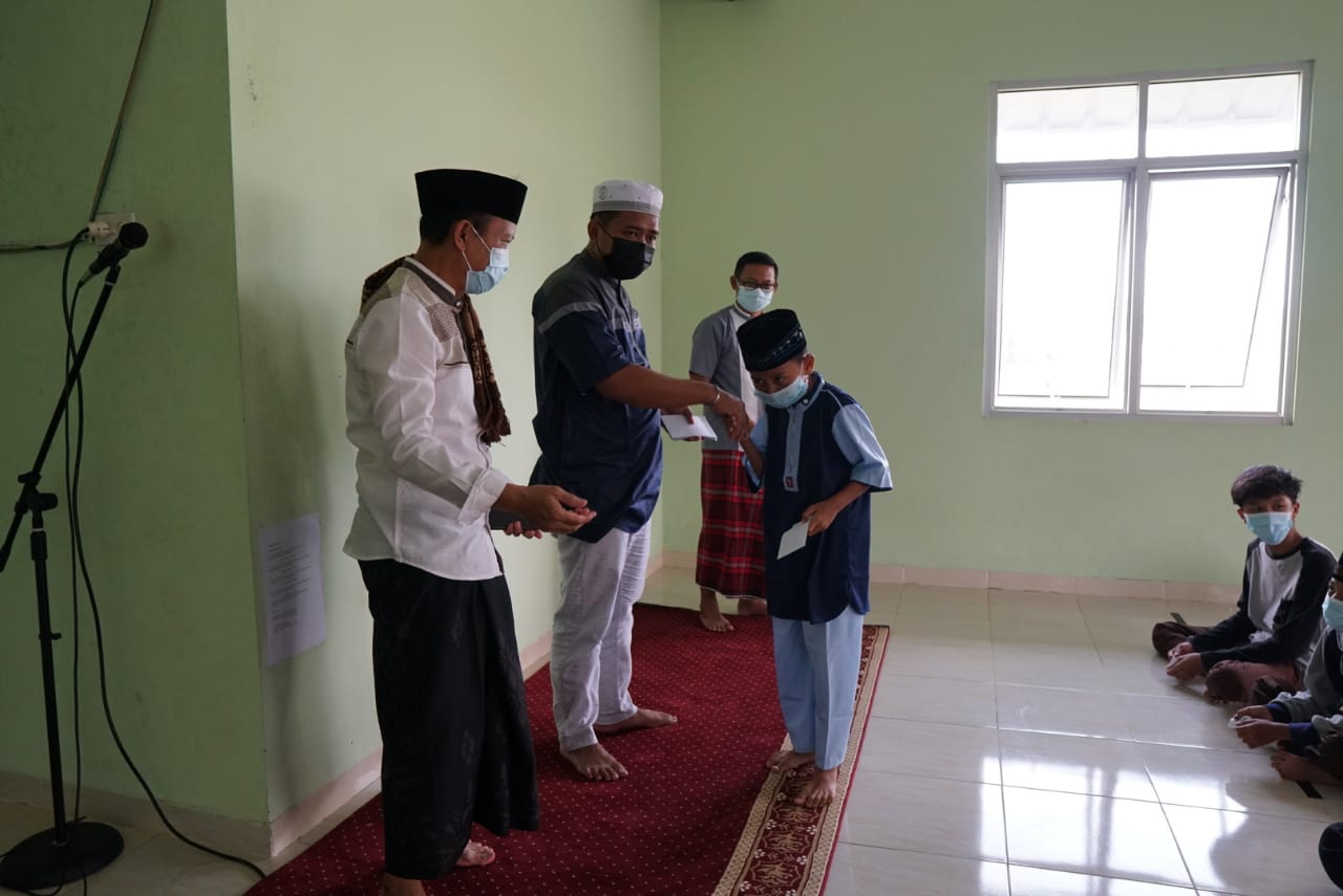 Acara dengan pembatasan karena memang dikhususkan bagi warga kedua komplek perumahan yang lokasinya saling berdampingan ini digelar dengan penerapan protokol kesehatan di Mushola An-Nashr, Komplek Perumahan Bumi Waras I Podorejo, Kabupaten Pringsewu, Ahad (25/4/21).