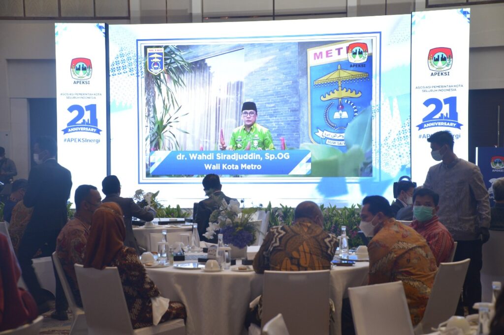 Metro, etalaseinfo.com (SMSI) – Walikota Metro, Wahdi, menghadiri Peringatan Ulang Tahun dan Peluncuran Dashboard APEKSI di Hotel Fairmont jalan Asia Africa No 08 Senayan Jakarta Pusat, Selasa (25/05/2021).