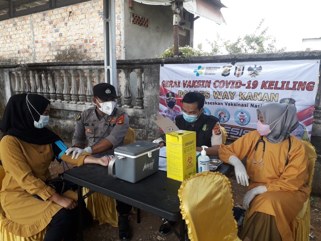 Kapolres Way Kanan AKBP Binsar Manurung menyebut pemberian vaksin secara keliling menggunakan kendaraan dinas Vaksinasi milik Polres Way Kanan merupakan kegiatan lanjutan yang dimulai dari hari Sabtu 24 Juli 2021 lalu dengan membuka dua gerai yakni di Dsn Pasar Baru dan Sp. 4 Kampung Negeri Baru Kecamatan Umpu Semenguk Kabupaten Way Kanan.
