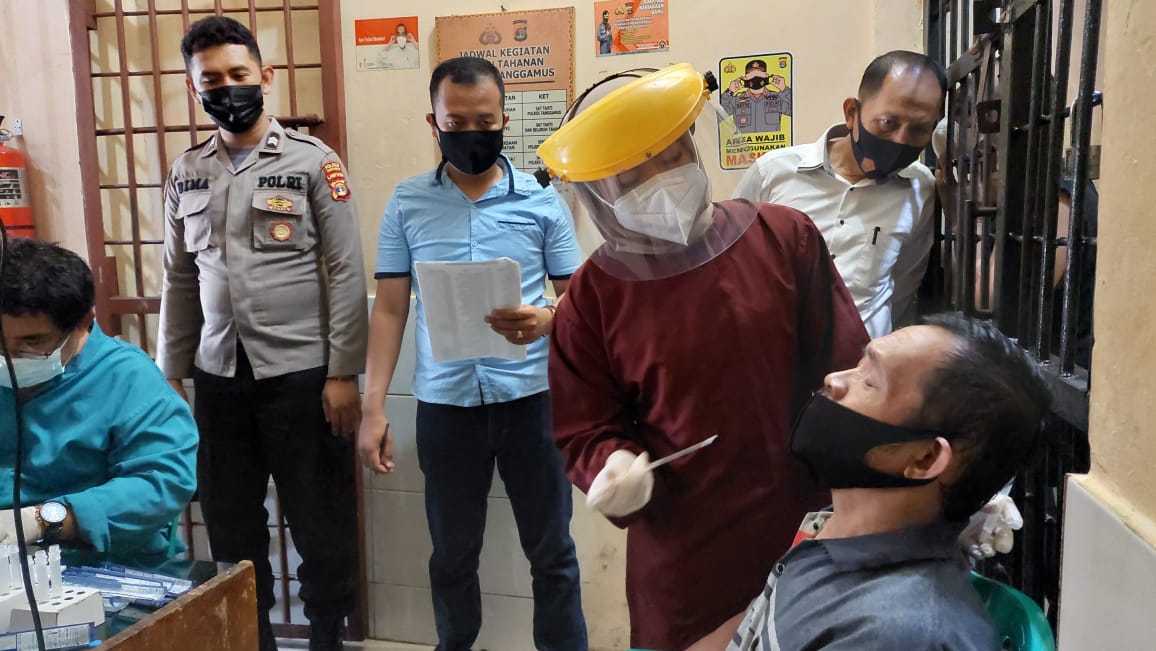 Pelaksanaan swab antigen Covid-19 dipimpin langsung Kasat Tahti Iptu Bambang Sugiono guna memastikan para tahanan dalam keadaan sehat, tidak terpapar Covid-19.