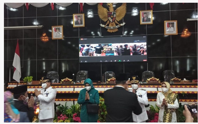 Berdasarkan keputusan menteri dalam negeri nomor 131.18-365 tahun 2021 tentang perubahan atas keputusan menteri dalam negeri nomor 131.18- 252 tahun 2021 tentang pengesahan pengangkatan kepala daerah dan wakil kepala daerah serentak tahun 2020 di kabupaten kota provinsi lampung. Ujar Tondi Ketua DPRD Kota Metro dalam sambutannya.
