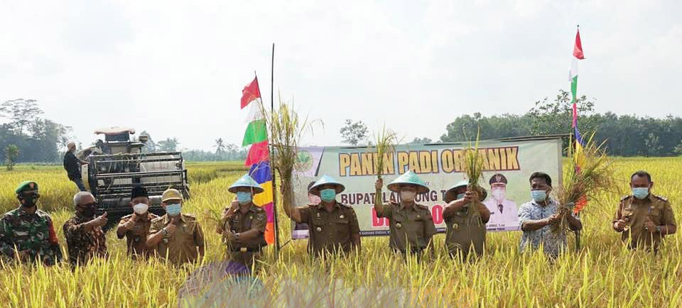 Terbanggi Besar, etalaseinfo.com (SMSI) – Plt. Asisten Bidang Perekonomian dan Pembangunan Drs. Eko Dian Susanto, M.I.P. mewakili Bupati Lampung Tengah Musa Ahmad menghadiri acara Panen Padi Organik Demonstration Plot (Demplot) di Dusun 4 Desa Karang Endah Kecamatan Terbanggi Besar pada Selasa 27 April 2021.