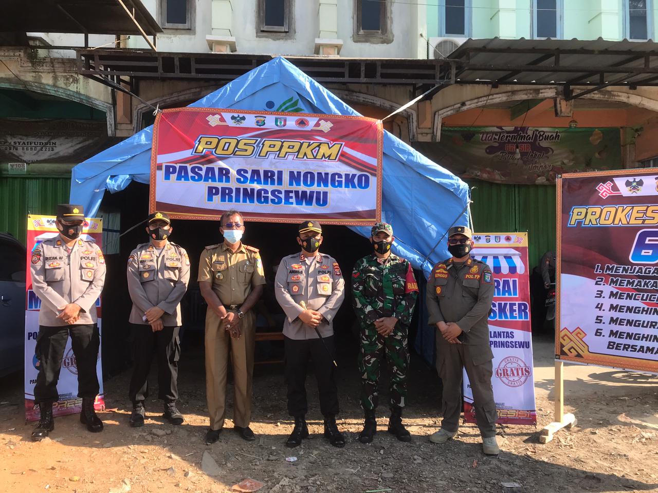 Kapolres Pringsewu AKBP Hamid Andri Soemantri mengungkapkan, pendirian pos ini tujuannya supaya masyarakat di pasar tertib memakai masker