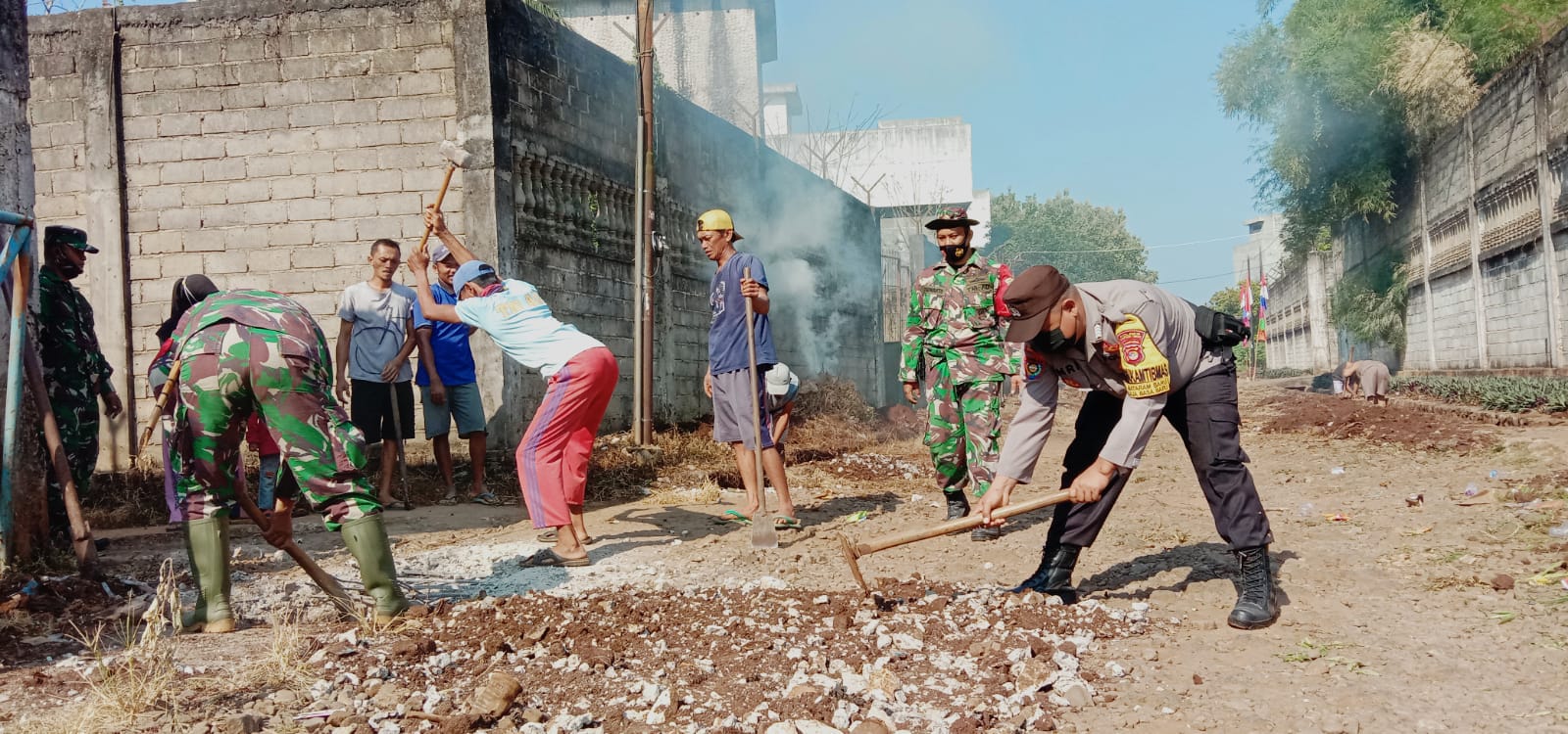 Lampung (Siberindo.co) Kepala Desa Mataram Baru bersama Koramil 429-10/LBM melaksanakan giat gotong royong memperbaiki sarana umum seperti gorong-gorong bersama masyarakat di dusun IV Desa Mataram Baru, Kecamatan Mataram Baru Lampung Timur, Jum,at (27/08/2021).