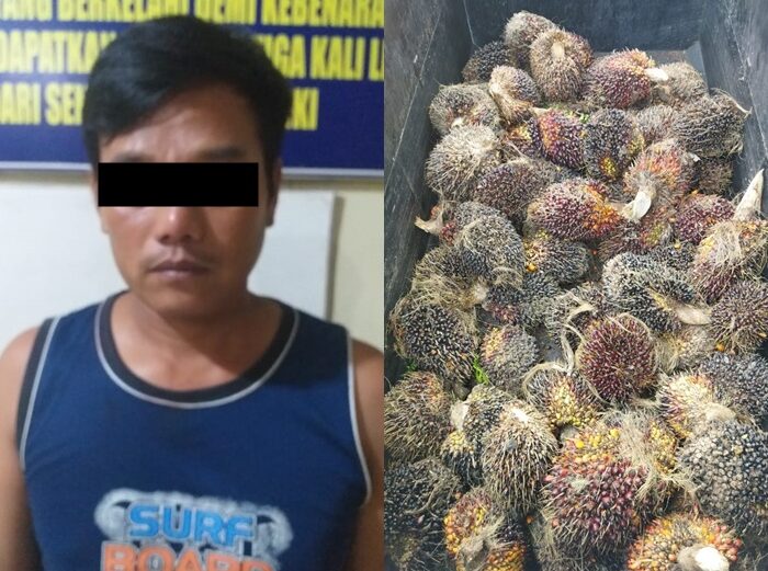 Lampung tengah, etalaseinfo (SMSI) – Saat Security bersama rekanya berpatroli di perkebunan kelapa sawit PTPN 7 Padang Ratu blok 12 Afdeling I Kec. Padang Ratu Kab. Lampung Tengah, memergoki 5 (lima) orang laki – laki yang sedang memanen buah kelapa sawit tanpa izin kemudian security dan rekannya berhasil mengamankan satu orang diantaranya yang berinisial RE (38) warga Dsn.Nyukang Harjo Kec. Padang Ratu Kab.Lampung Tengah dan langsung digiring ke Polsek Padang Ratu. Sabtu (25/9/21).