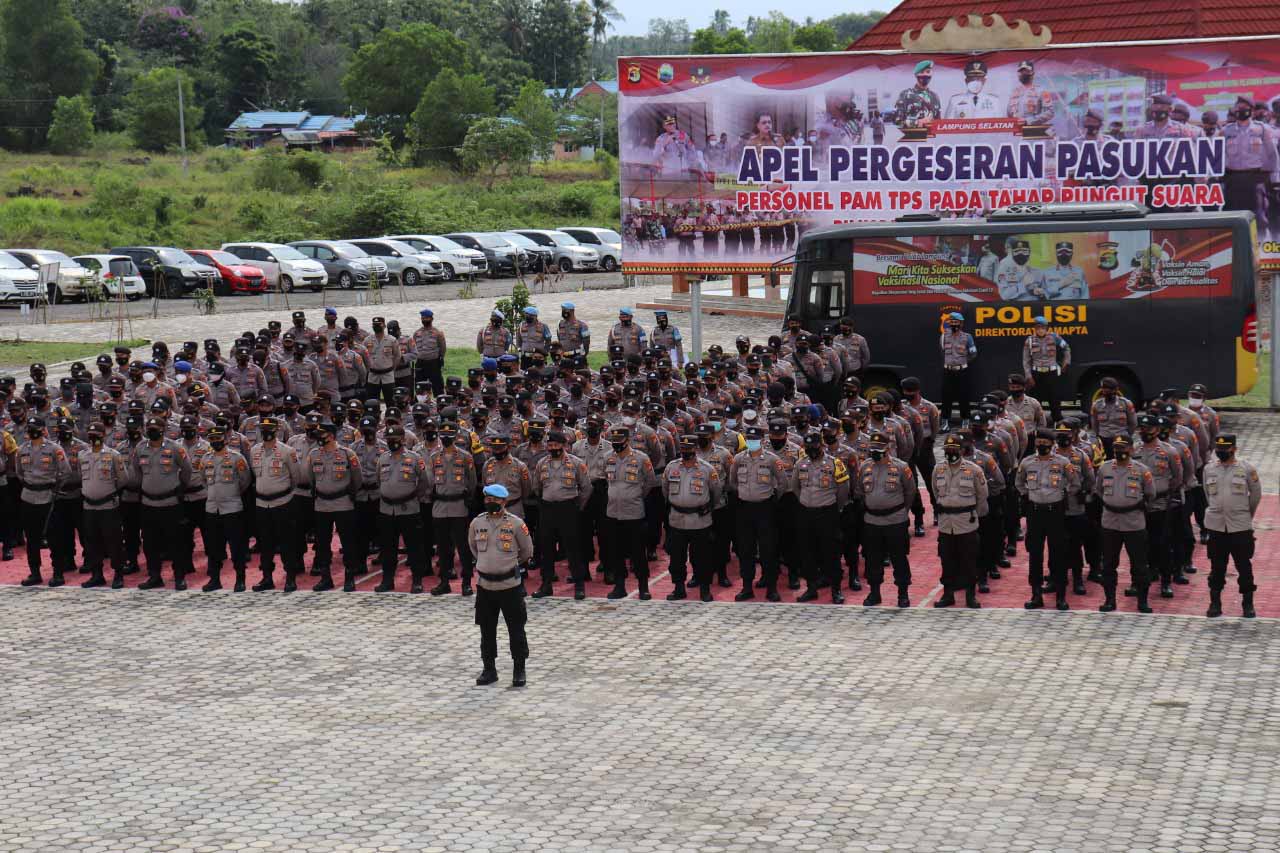 Lamsel, etalaseinfo (SMSI) –  Polres Lampung Selatan menggelar upacara Pergeseran Pasukan (Serpas) pengamanan pemilihan kepala desa serentak 2021.