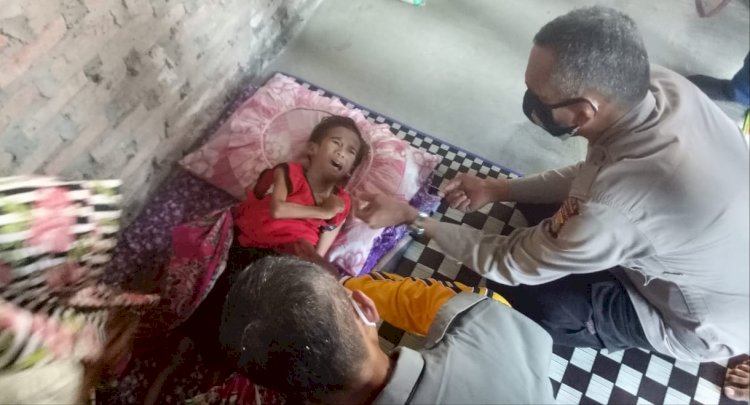Polres Tanggamus, Lampung melakukan pendampingan penyerahan bantuan sosial kepada Aden (23) penderita Kusta dan M. Alvin Ramadhan (6) penderita jantung bocor di rumahnya masing-masing di Kelurahan Pasar Madang, Kotaagung, Sabtu (26/12).