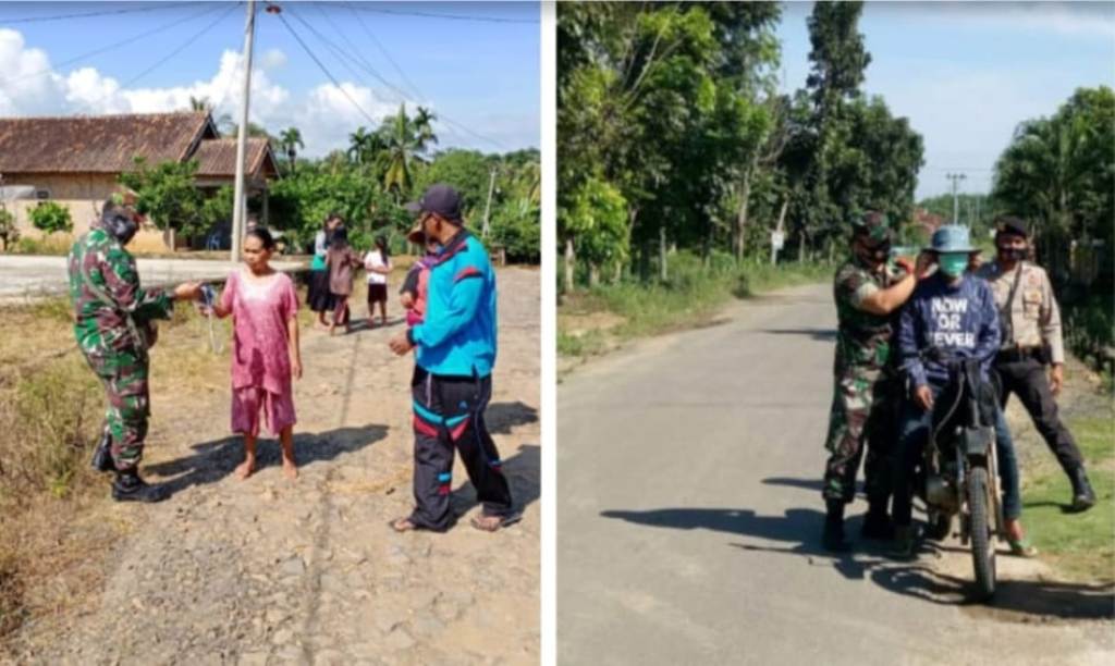 Seperti yang dilakukan oleh Sertu Syamsul Ahmad Babinsa Kampung Rantau Jaya Melaksanakan pembagian Masker Kepada Masyarakat Yang Sedang Berada Di Kantor pos Kecamatan dan Masyarakat Kampung Rantau Jaya sebagai upaya untuk Mencegah penyebaran Covid-19.