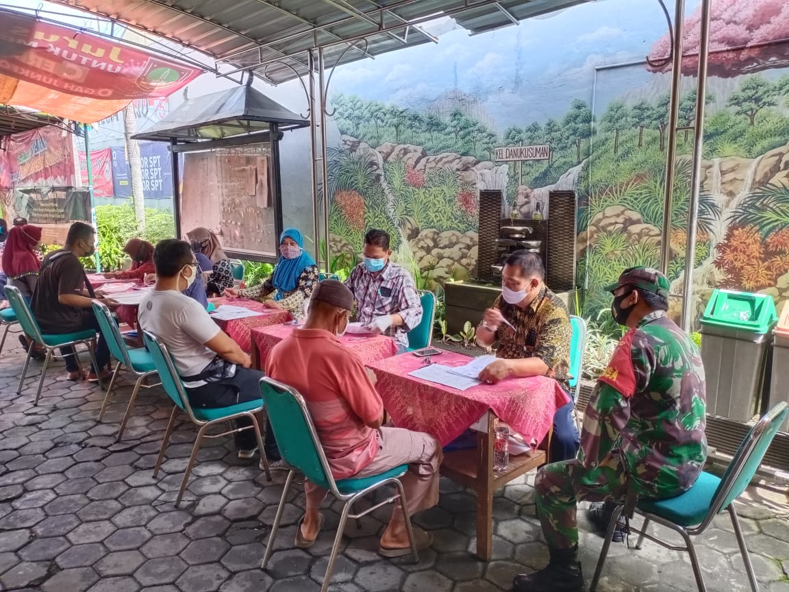 Sertu Priyanto mengungkapkan wajib dilakukan mulai dari cuci tangan atau pakai handsanitizer, Cek suhu tubuh, menggunakan masker dan selalu jaga jarak saat pelaksanaan pembagian dipendopo Kel. Danukusuman jl. Yos Sudarso no. 365. Adapun jumlah nominal yang dibagikan yaitu Rp. Rp. 300.000,_ di bagikan per KK, untuk penerima BST tahap 10 Warga kelurahan danukusuman sebanyak 1.450 KK dengan ketentuan pengambilan warga yang menerima BST dengan membawa syarat sebagai berikut, KTP/ KK Asli, Foto Copy KK dan KTP 1 Lembar dan Undangan dari Kantor Pos.