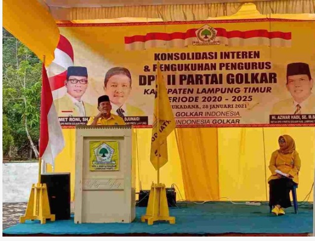 GR ( Lampung Timur ) – Partai Golongan Karya (Golkar) gelar acara konsilidasi dan pengukuhan pengurus DPD ll partai Golkar kabupaten Lampung timur periode 2020 – 2025,Kamis (28/01/2021).