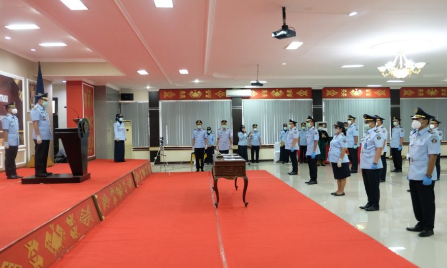Pelantikan dua orang pejabat lapas gunung sugih yang baru, berbarengan dengan pelantikan 21 pejabat lapas lainya yang digelar di Aula Kemenkumham Lampung.