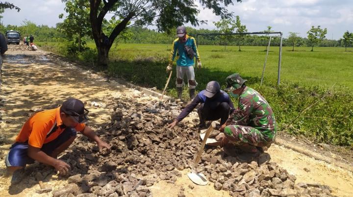 Saibumi.com (SMSI) BOJONEGORO – Pengerjaan jalan poros desa yang menjadi sasaran pekerjaan fisik Program TMMD (TNI Manunggal Membangun Desa) ke 110 di Desa Ngrancang, Kecamatan Tambakrejo, Kabupaten Bojonegoro, Jawa Timur, dalam pelaksanaanya anggota Satgas dibantu oleh warga masyarakat sekitar.