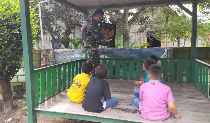 “Kita sedang bersama anak-anak, kita ajak mereka tanya jawab seputar Lambang Negara kita,” tutur Serda Lajahidin.