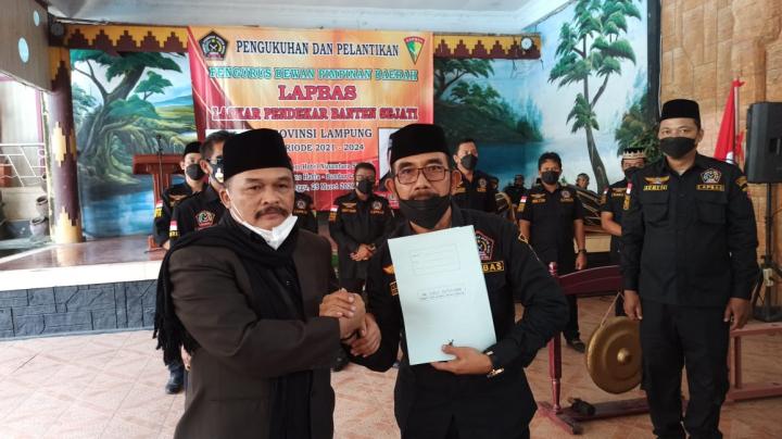 Pelantikan ini diresmikan langsung oleh Ketua Umum DPP Lapbas dengan pemukukan gong yang sebelumnya di laksanakan penyerahan bendera pataka dari Ketua Umum DPP Lapbas Hi. TB Endang S. kepada ketua DPD Provinsi Lampung H. M. Mukri AR.