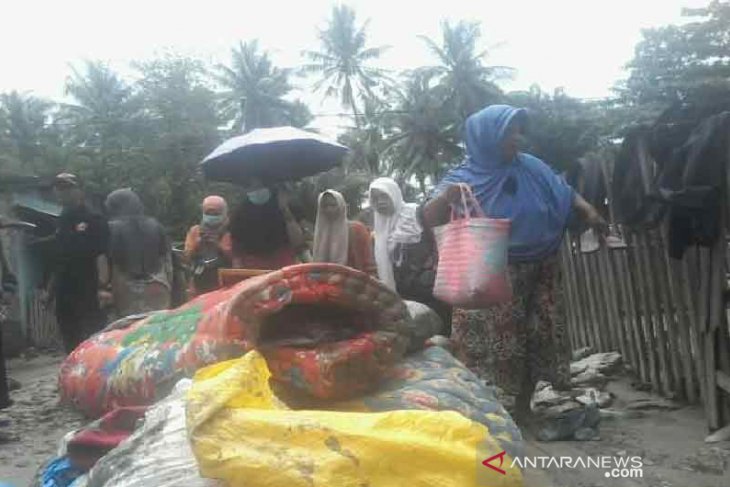 Pantauan ANTARA, di lokasi Banjir yang berada sekitar 30 km arah selatan Kota Palu, Sabtu, para pengungsi meninggalkan rumah karena rata-rata rumah mereka terendam lumpur.