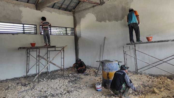 Untuk mempercepat proses pengerjaan proyek pembangunan gedung SDN tersebut, Anggota TMMD dibantu oleh masyarakat sekitar.