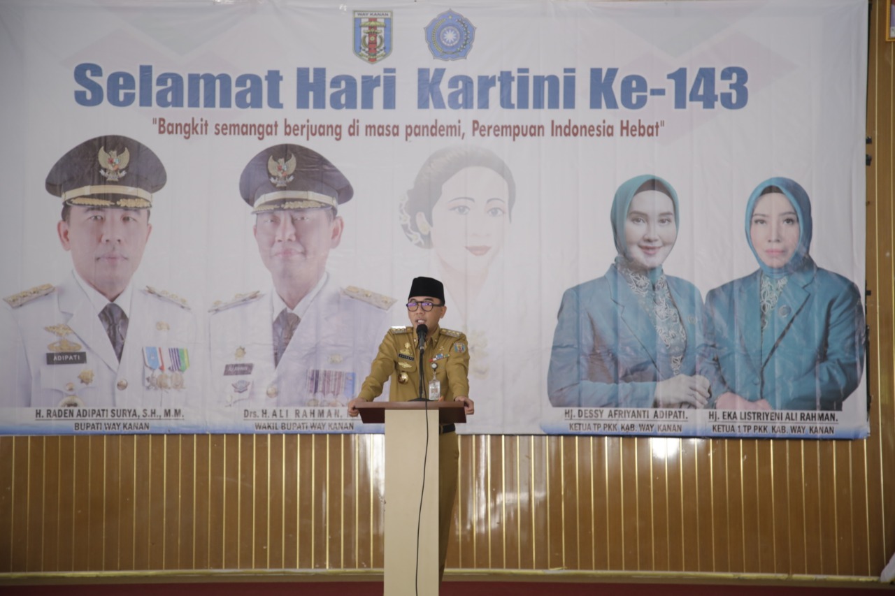 Beberapa aspek penting yang merupakan penghambat upaya peningkatan kualitas hidup perempuan antara lain ditunjukkan pada beberapa aspek yaitu bidang pendidikan, bidang kesehatan, bidang ekonomi, bidang politik dan pengembalian keputusan”, ujar Bupati H. Raden Adipati Surya, S.H.,M.M saat menyampaikan sambutan pada Peringatan Hari Kartini Tingkat Kabupaten Way Kanan, Selasa (27/04/2021) di Gedung Serba Guna Pemda setempat.