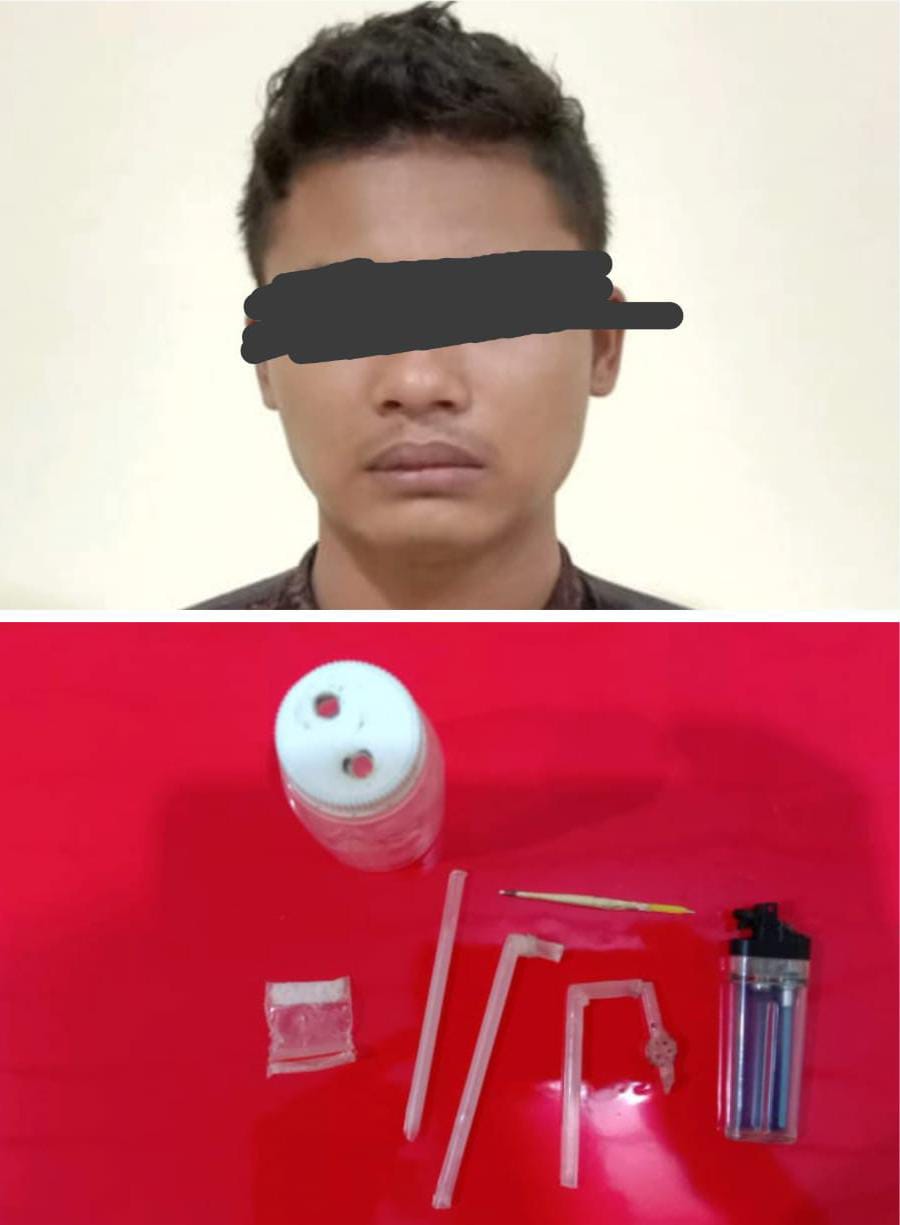 Dirinya juga menjelaskan dari TKP, tim Cobra berhasil mengamankan Barang Bukti (BB) satu buah gulungan alumunium foil yang didalamnya terdapat plastik klip ukuran kecil berisikan narkotika jenis sabu dengan berat kurang lebih 0,24 gram dan satu buah alat hisap sabu (bong) yang disembunyikan pelaku diatas fentilasi kamar.