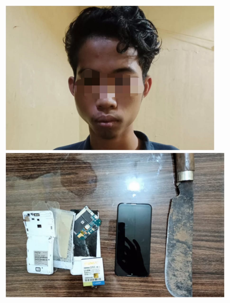 Pelaku yang dijerat dengan pasal 363 KUHP ini, bersama barang buktinya berupa satu unit HP merk smartfren warna putih. 1 buah HP merk Redmi Note7 warna hitam dan 1 (satu) Buah senjata tajam jenis golok sudah diamankan polsek Candipuro sudah diamnakan di Mapoksek Kalianda guna penyidikan lebih lanjut. (hms-J)