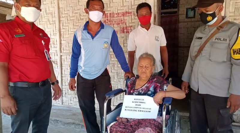 Candipuro, etalaseinfo.com (SMSI) – Bupati Lampung Selatan Hi. Nanang Ermanto melalui Kepala Unit Pelaksana Tehnis Daerah (KUPTD) Puskesmas Rawat Inap (PRI) Candipuro Ahmad Solatan, SE menyalurkan bantuan berupa kursi roda kepada Mbah Risem (80) warga Dusun Wonosari, Desa Sidoasri, Kecamatan Candipuro, Kabupaten Lampung Selatan, Penderita lumpuh permanen akibat menderita penyakit menahun diusia senja, Jumat (27/8/2021) dikediamanya.