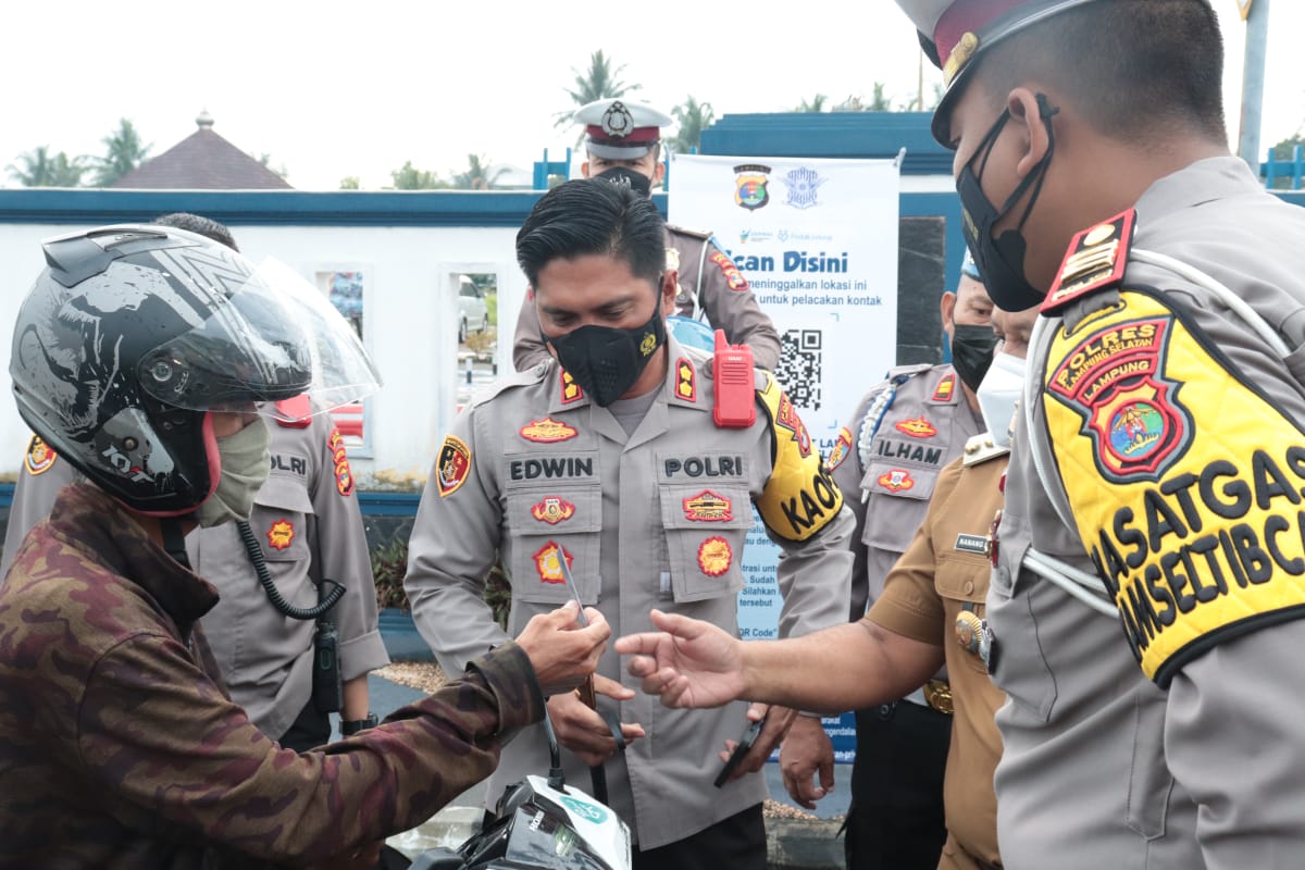 Kapolres Lampung Selatan AKBP Edwin, SIK, SH, MSi mengatakan bahwa, Operasi Patuh Krakatau 2021 ini sifatnya himbauan dan mengingatkan kembali kepada warga masyarakat, khususnya para pengendara agar selalu mematuhi protokol kesehatan (prokes).