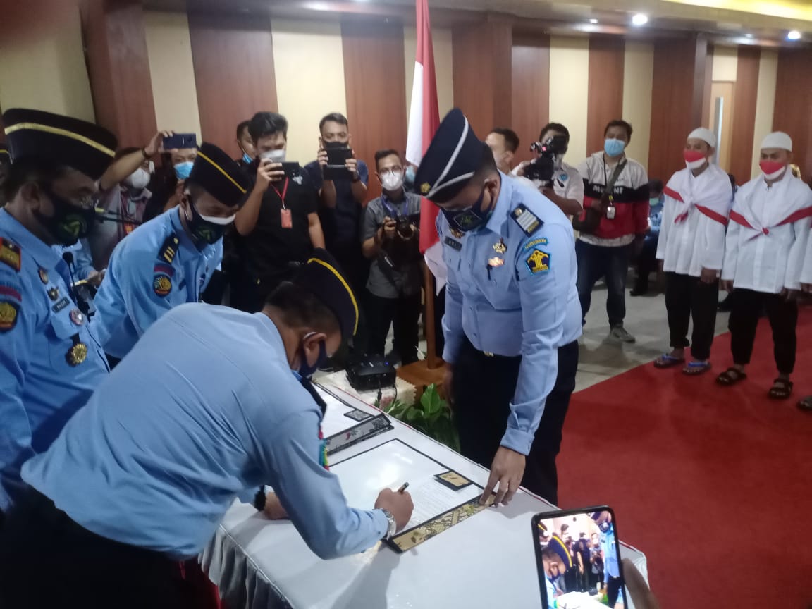 Bandar Lampung, etalaseinfo (SMSI) – Tiga (3) Narapidana Teroris di Lapas Kelas 1 Bandar Lampung dan satu (1) dari Lapas Metro, menyatakan Ikrar Setia Kepada NKRI. Selasa 28 September 2021.