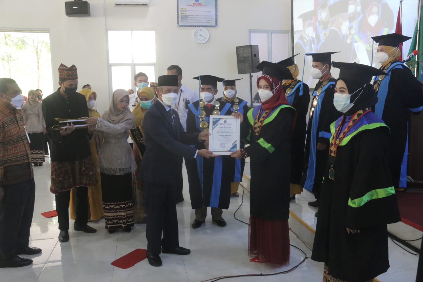 Acara wisuda tersebut juga dihadiri Kadis Pendidikan dan Kebudayaan Kabupaten Pringsewu Hipni, SE, MM, Kadis Kesehatan dr.Ulinoha Faras, para wakil rektor dan dekan fakultas, serta dari PP, DPW dan DPD Muhammadiyah beserta sejumlah tamu dan undangan, dengan protokol kesehatan. (*/ IH-J)