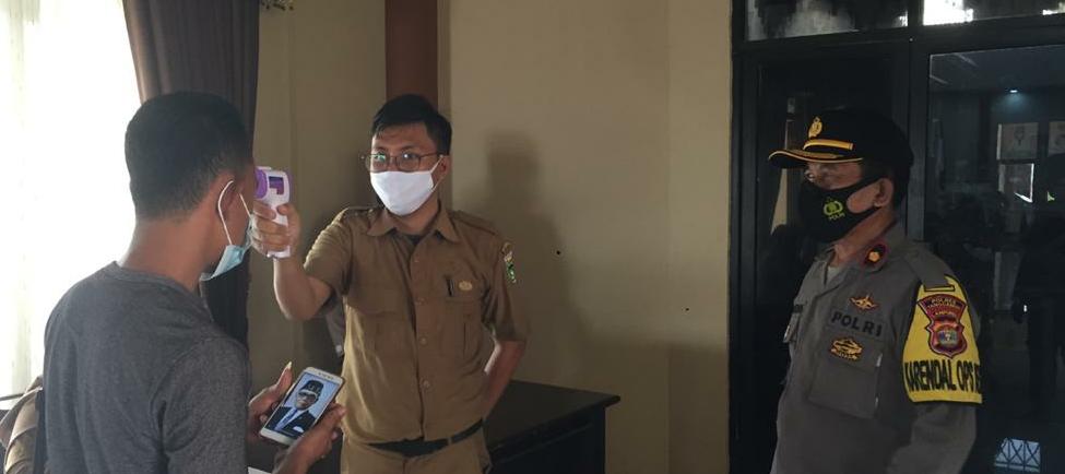 Kota Agung, etalaseinfo.com – Sejumlah personel gabungan Polres Tanggamus melaksanakan pengamanan rapat dengar pendapat antara DPRD Tanggamus dengan perwakilan calon kepala pekon, Senin (28/12/20) siang.
