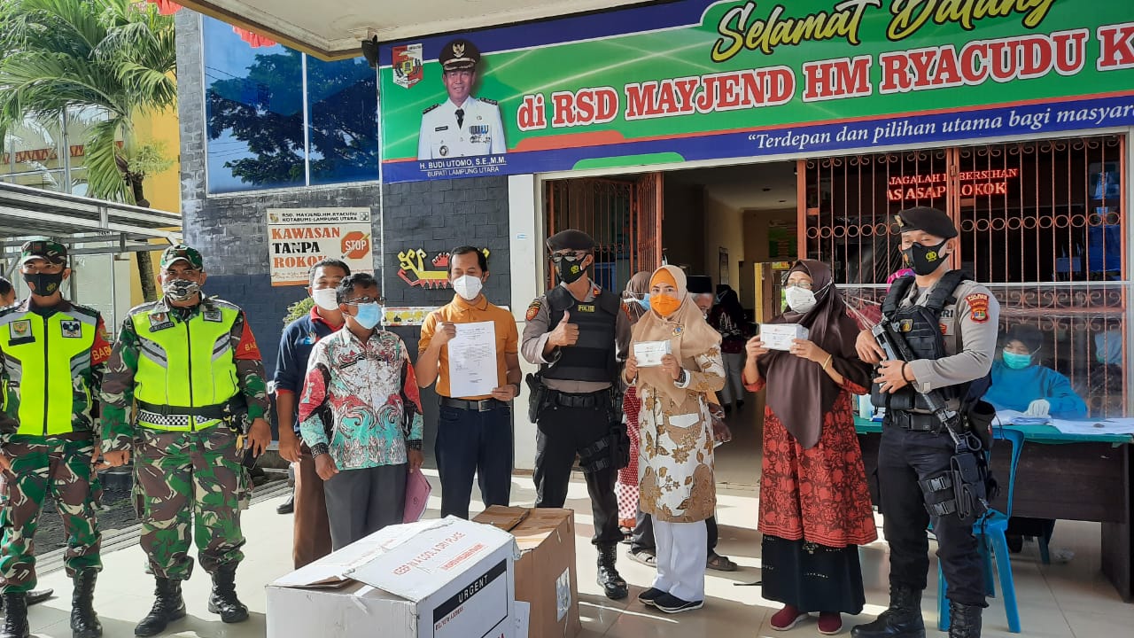 Rumah Sakit Umum Daerah Mayjend HM Ryacudu Kotabumi menerima 1074 vaksin Sinovac yang didistribusikan oleh Dinas Kesehatan (Dinkes) Lampung Utara (Lampura), Jum’at (29/1/2021).