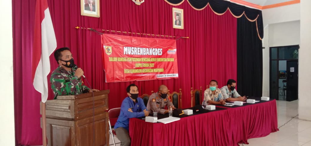 Babinsa Karanglor menginformasikan, kegiatan Musrenbangdes dapat berjalan dengan aman dan menerapkan protokol kesehatan.