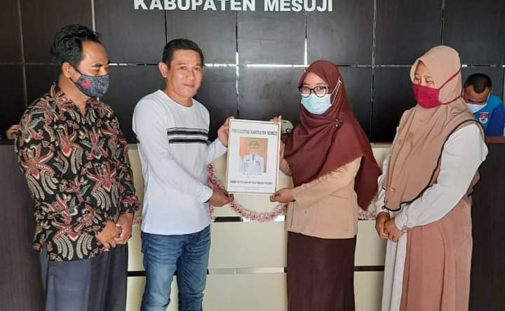 Mesuji, etalaseinfo.com – Kepala BKPSDM Mesuji Yopi Saputra menyerahkan SK pengangkatan sebagai tenaga non PNS kepada dua guru dari Way Serdang, Jumat (29/01/2021).