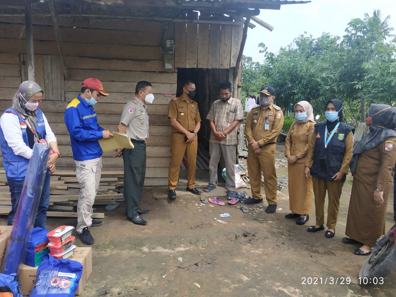 Turut hadir dalam pemberian bantuan tersebut. Somad Kepala Dinas Sosial, Nisom Kepala BPBD, Nazaruddin Camat Tulangbawang Tengah (TBT) , Fitri Kepala Tiyuh Penumangan, Aris Sutopo Sekertaris Tiyuh Penumangan Baru, Senin 29/03/2021.