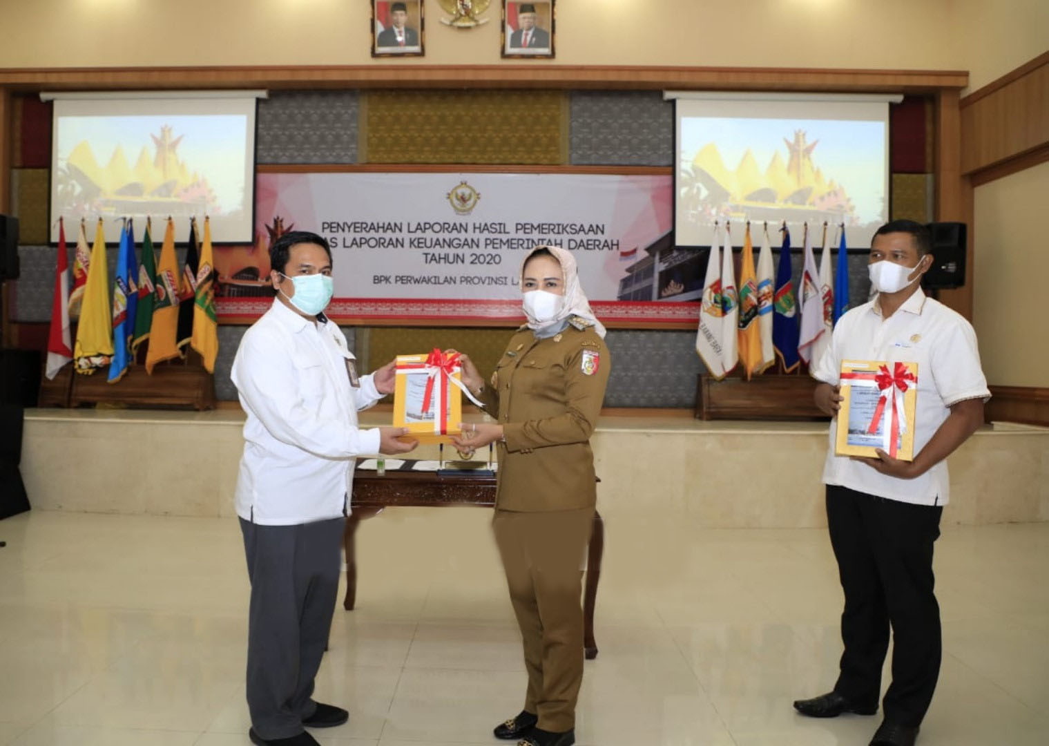 Penyerahan Penghargaan Opini Wajar Tanpa Pengecualian ( WTP ) 7 kali berturut-turut dari pemerintah pusat yang diberikan langsung oleh Kepala BPK RI Perwakilan Provinsi Lampung (Andri Yogama, SE.,MM.,Ak.,CSFA), terkait Laporan Hasil Pemeriksaan atas Laporan Keuangan Pemerintah Daerah (LKPD) Tahun Anggaran 2020.