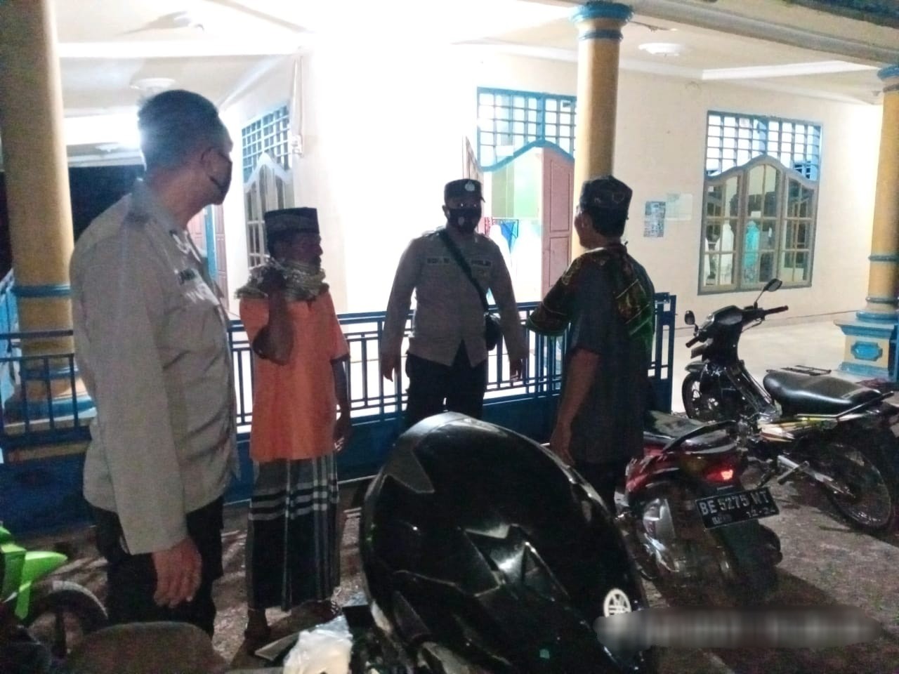 Selain itu, petugas dari Polsek Buay Bahuga Bripka Irawan dan Bripka Edi Wibowo di depan Masjid Nurul Jannah Kampung Bumi Harjo memberikan himbauan tentang protokol Kesehatan bagi masyarakat yang hendak melaksanakan shalat tarawih.