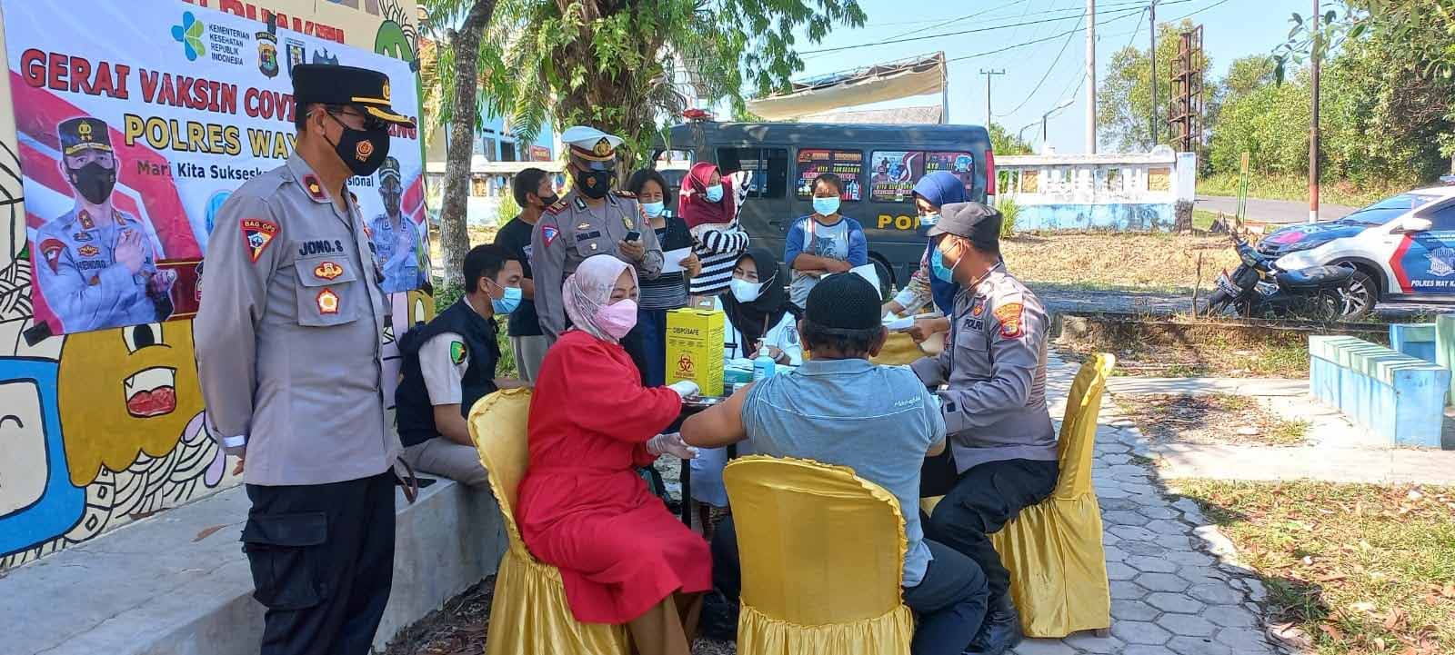 Way Kanan, etalaseinfo.com – Dalam rangka menyukseskan program Vaksinasi Nasional dan pemberian bantuan kepada masyarakat yang terdampak dari Covid-19. Polres Way Kanan gelar kegiatan Vaksinasi keliling. Rabu (28/7/2021) kemarin.