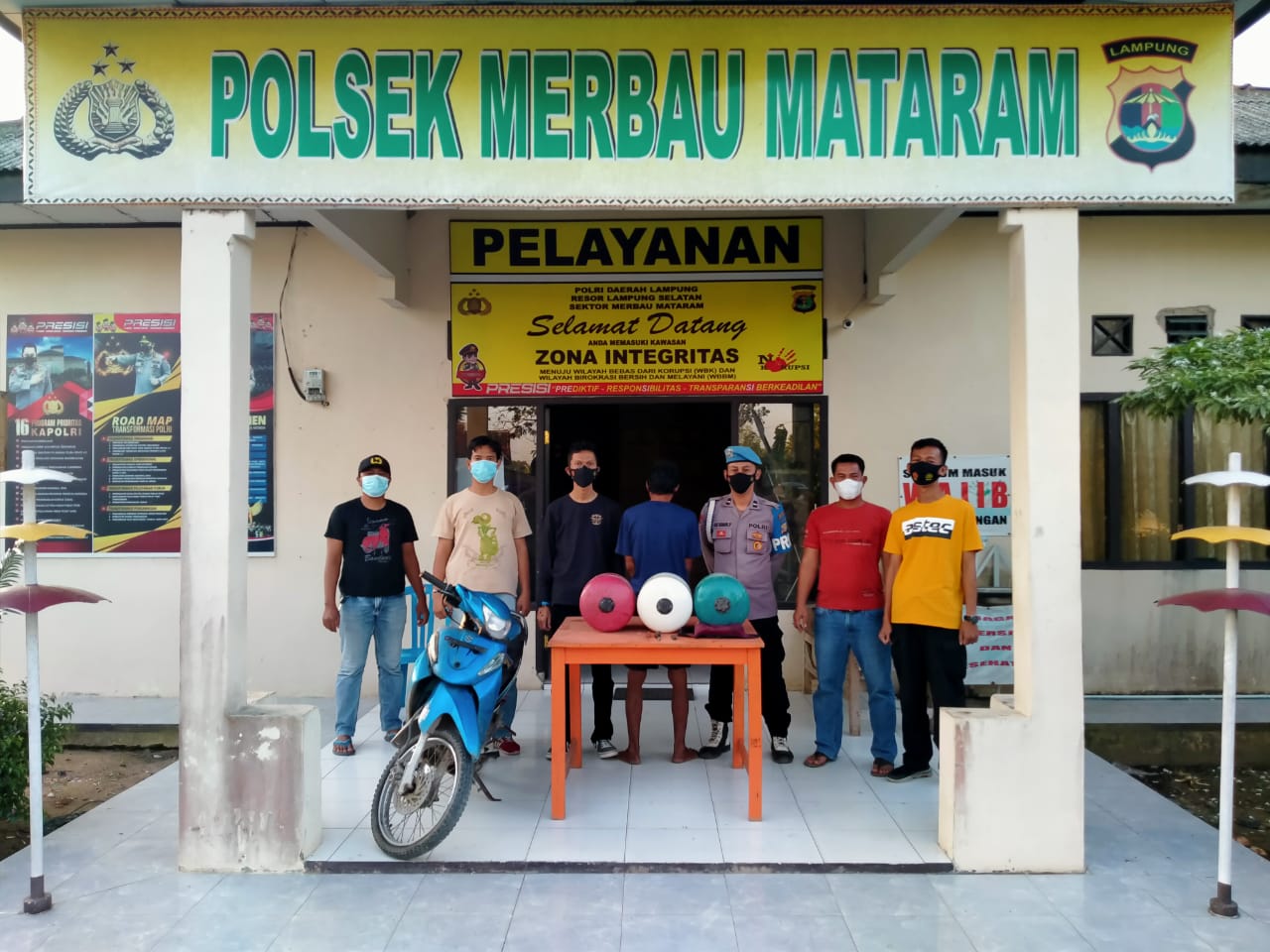 Selain mengamankan pelaku, pihaknya juga berhasil mengamankan barang bukti berupa 3 (tiga) buah tabung air, 1 (satu) unit senjata tajam jenis pisau dengan panjang kurang lebih 10 cm, bergagang kayu yang dibungkus dengan lakban warna hitam, 1 (satu) buah tas pinggang warna merah marun, 1 (satu) unit sepeda motor suzuki smash warna biru tanpa plat nomor.