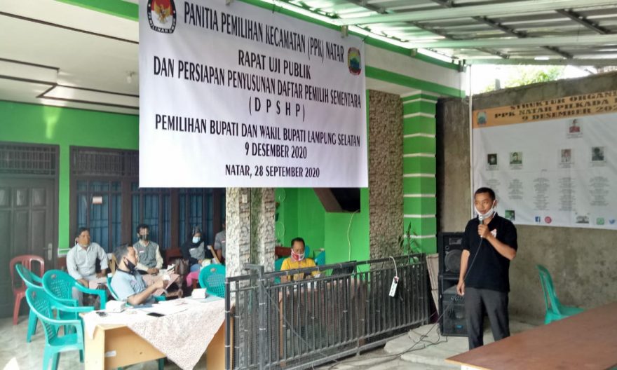 Natar, etalaseinfo.com – Guna menjaring dan mendapatkan tanggapan dari masyarakat tentang daftar pemilih sementara (DPS) Di Kecamatan Natar Lampung Selatan, Panitia Pemilihan Kecamatan (PPK) Natar menggelar Rapat Uji Publik disekretariat PPK Natar, senin 28 September 2020 pukul 14.00 WIB kemarin.