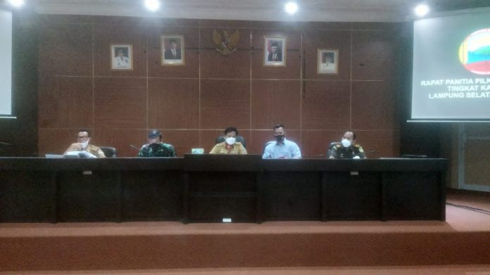 Kalianda, etalaseinfo (SMSI) – Pemkab Lampung Selatan (Lamsel), menggelar rapat panitia Pemilihan Kepala Desa (Pilkades) serentak 2021, Selasa, (28/09/21).
