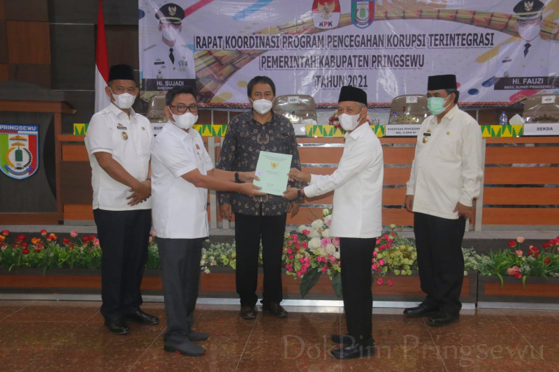 Pringsewu, etalaseinfo (SMSI) – Pemerintah Kabupaten Pringsewu bersama Komisi Pemberantasan Korupsi Republik Indonesia (KPK RI) menggelar Rapat Koordinasi Pencegahan Korupsi Terintegrasi di Aula Utama Pemkab Pringsewu, Rabu (29/9/21).