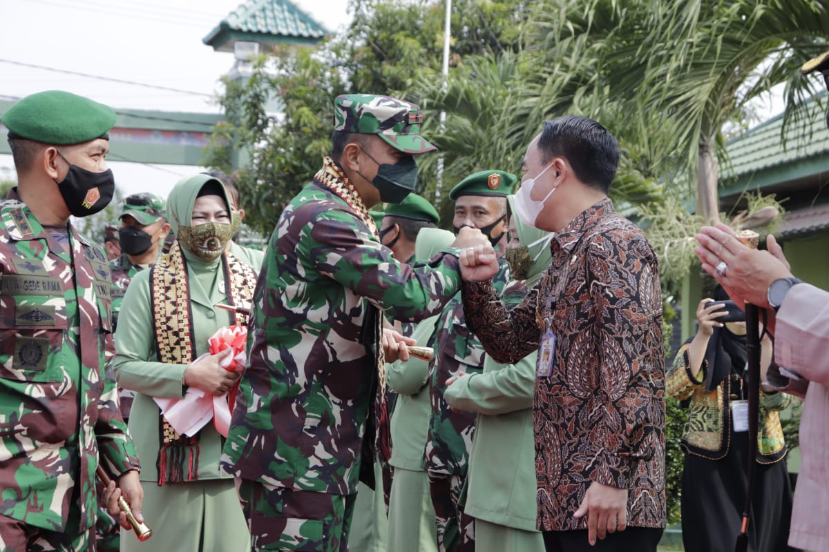 Bupati Way Kanan, H. Raden Adipati Surya, S.H., M.M menyambut Kunjungan Kerja Komandan Resor Militer (Danrem) 043/Garuda Hitam Brigjen TNI Drajad Brima Yoga, S.I.P., M.H beserta jajaranya yang melakukan kunjungan kerja way kanan, jum’at (30/04/2021)