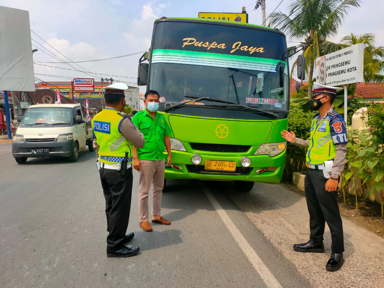 Pringsewu, etalaseinfo.com (SMSI) – Satlantas Polres Pringsewu sosialisasikan larangan mudik Lebaran 2021 kepada pengemudi dan perusahaan angkutan umum (PO) dalam provinsi dan luar provinsi yang ada di wilayah hukumnya.