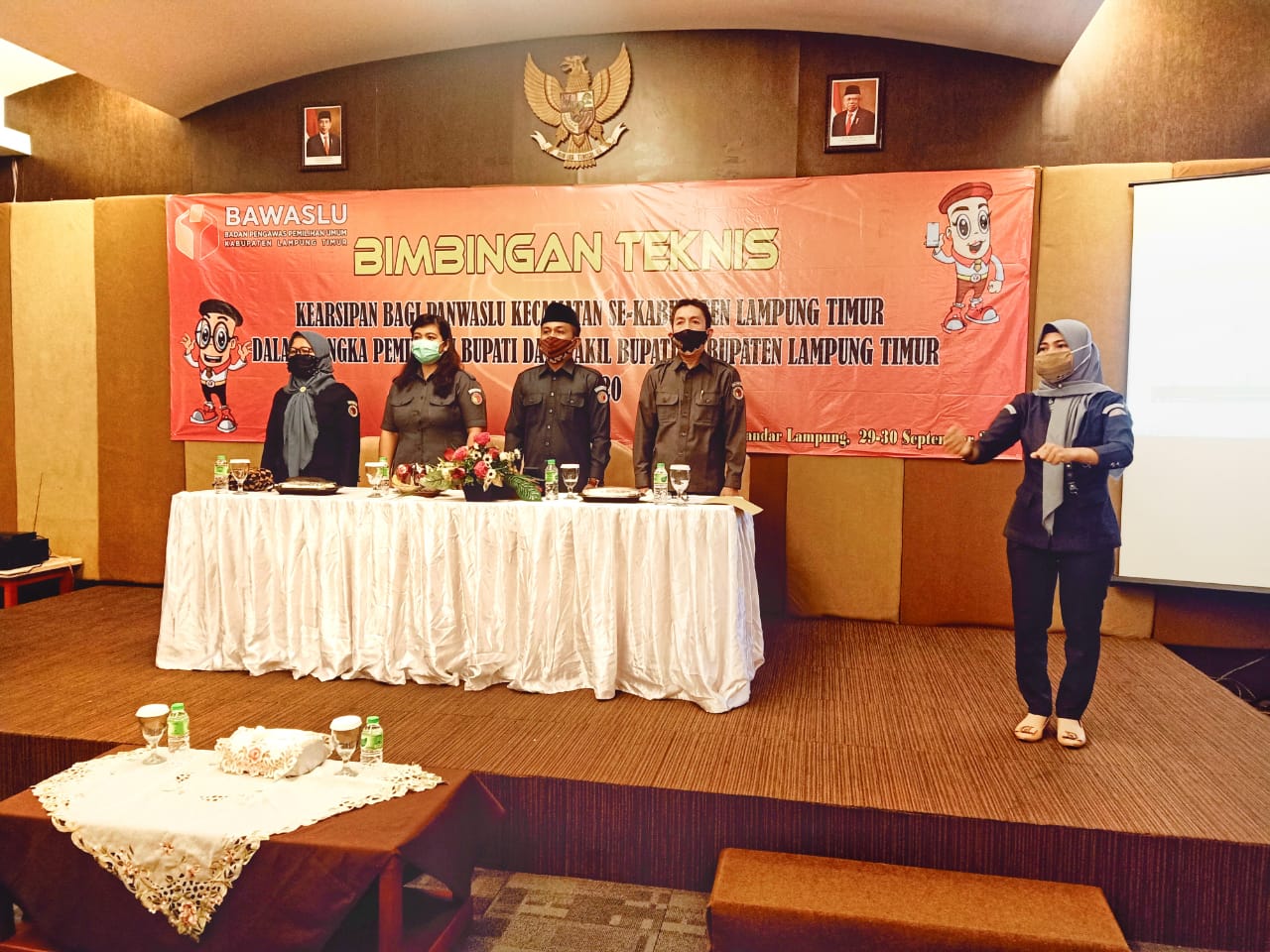 Lampung (Bumi1.com) Badan Pengawasa Pemilihan Umum (Bawaslu) Lampung Timur mengadakan Kegiatan Bimbingan Teknis (Bimtek) kearsipan dan sosialisasi kepada Panwaslu di 24 Kecamatan yang ada di Kabupaten Lampung Timur, bertempat di Hotel Arinas Bandar Lampung. Rabu (30/09/2020).