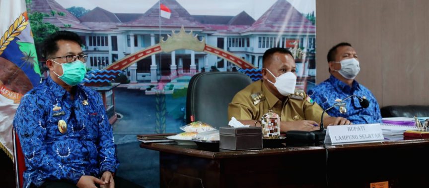 Bupati Lampung Selatan H. Nanang Ermanto didampingi Sekretaris Daerah (Sekda) Kabupaten Thamrin, menghadiri kegiatan tersebut secara virtual melalui aplikasi zoom meeting dari ruang video conference, rumah dinas bupati setempat, Senin (29/11/2021).