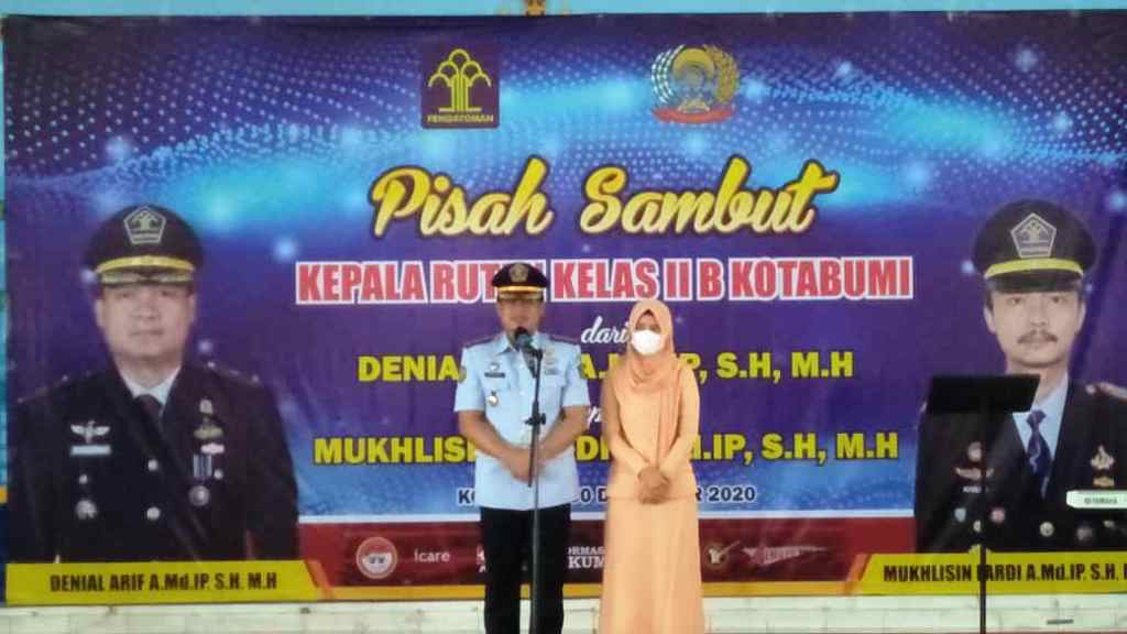 Rumah Tahanan (Rutan) Kelas IIB Kotabumi Lampung Utara gelar agenda Pisah Sambut Kepala Rumah Tahanan (Rutan) Kelas II B Kotabumi Lampung Utara, dari Denial Arif A.Md.IP,SH.MH kepada Mukhlisin A.Md.IP,SH.MH Kepala Rutan Kelas II Kotabumi, diaula Rutan setempat, Rabu (30/12/2020).