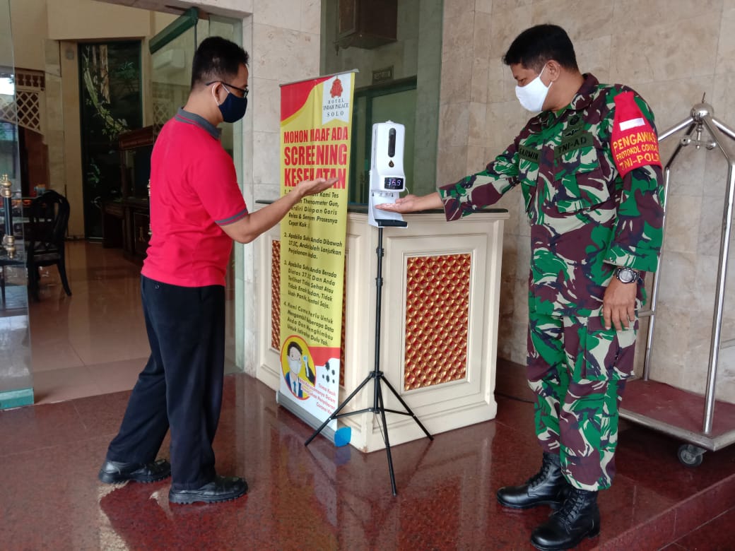 Babinsa Kelurahan Tipes Koramil 03/Serengan Kodim 0735 Surakarta Sertu Sarmin Melaksanakan pengecekan tentang penerapan PPKM yang bertempat di Hotel Indah Palace Jl.Veteran Kelurahan Tipes Kec. Serengan Kota Surakarta. (31/01)