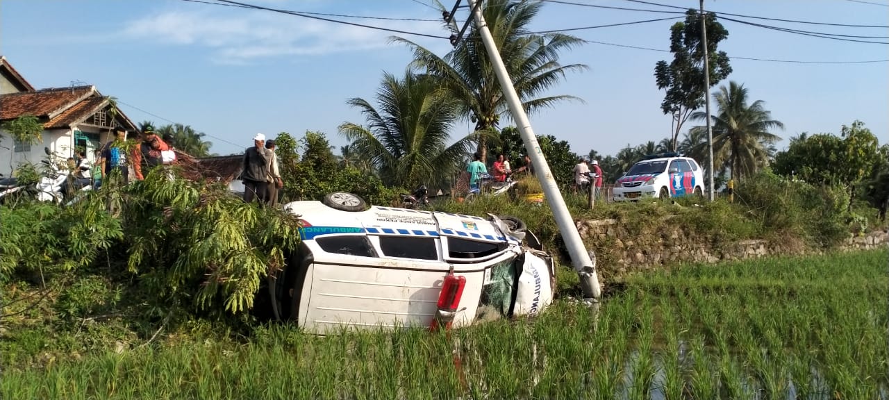 “saat di tikungan tersebut, sopir kaget langsung banting setir ke kiri menabrak tiang listrik dan masuk ke sawah,” jelasnya.