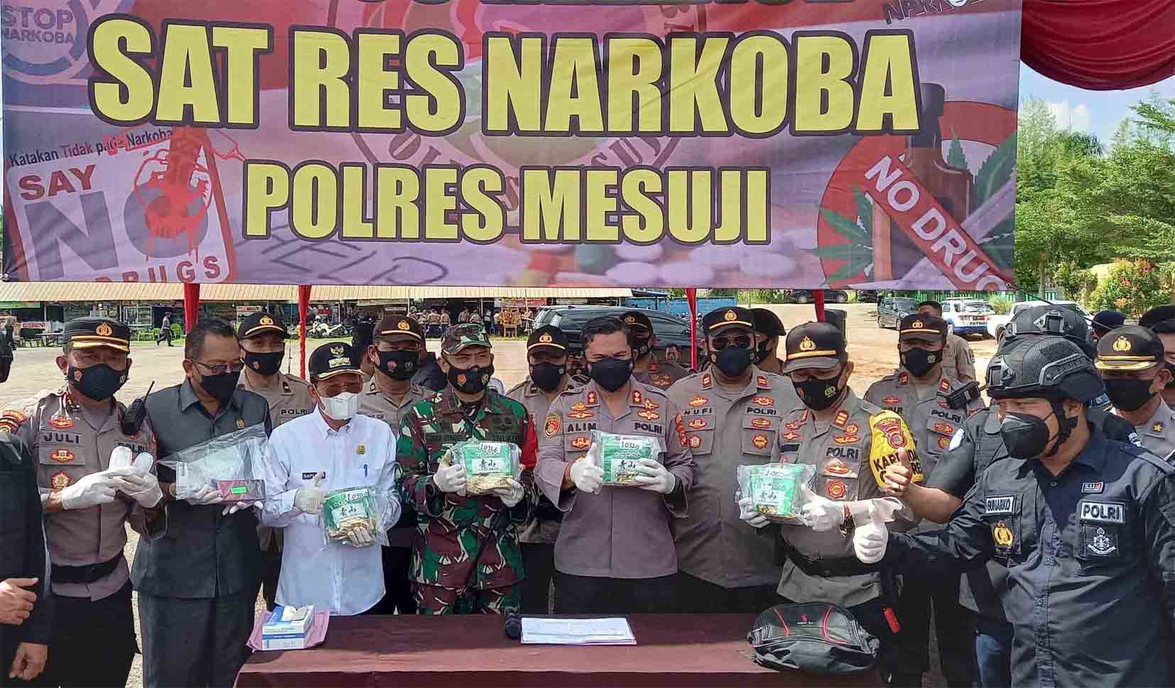 Press Rilis dipimpin langsung oleh Kapolres Mesuji AKBP Alim S.H, S.Ik dan di hadiri oleh Dandim 0426 Tulang Bawang Letkol Kav Joko Sunarto S.sos, M.Han, Bupati Mesuji Saply TH, Sekertaris Daerah Mesuji Syamsudin S.Sos, Ketua DPRD Mesuji yang di wakili oleh Suyadi, Seluruh PJU Polres Mesuji dan Kasat Narkoba IPTU M. Nufi S.Tr.K beserta anggota.