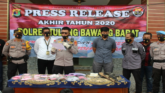 Hal itu diketahui ketika Konferensi Pers yang dikemas dengan tema Pres rilis ahir tahun 2020. Acara dipimpin Langsung Kapolres Tulangbawang Barat AKBP Hadi Saipul Rahman S.IK , disaksikan Wakapolres Tubaba Kompol Tri Hendro Prasetyo S.H , dan seluruh jajaran Perwira yang bertugas di Polres Tulangbawang Barat.